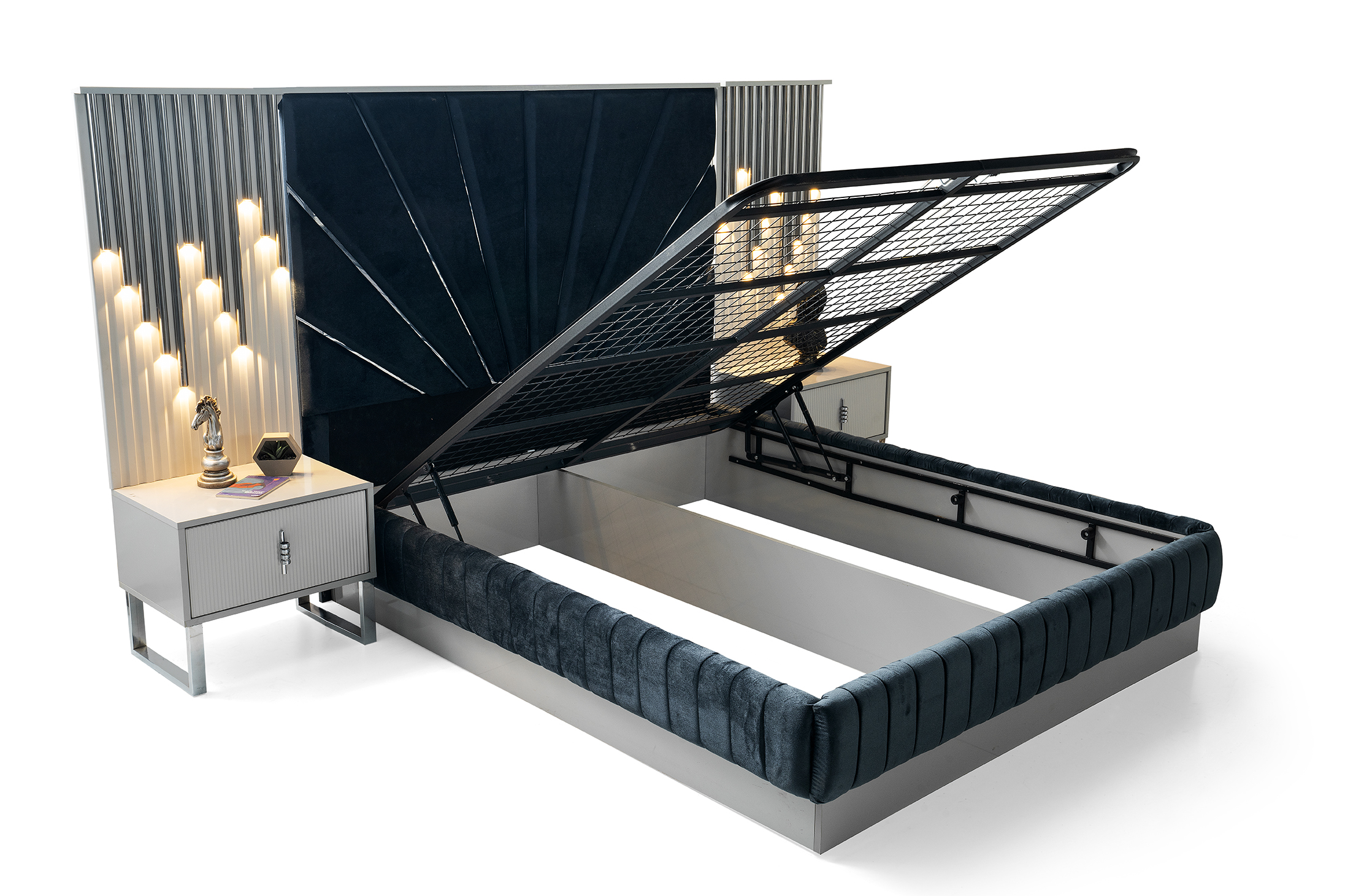 Sevin Home bazalar, modern tasarımı ve fonksiyonel yapısıyla yatak odanıza hem şıklık hem de konfor katıyor. Dayanıklı malzemeleri ve geniş depolama alanları sayesinde eşyalarınızı düzenli tutarken, ergonomik yapısı ile rahat bir uyku deneyimi sunar.