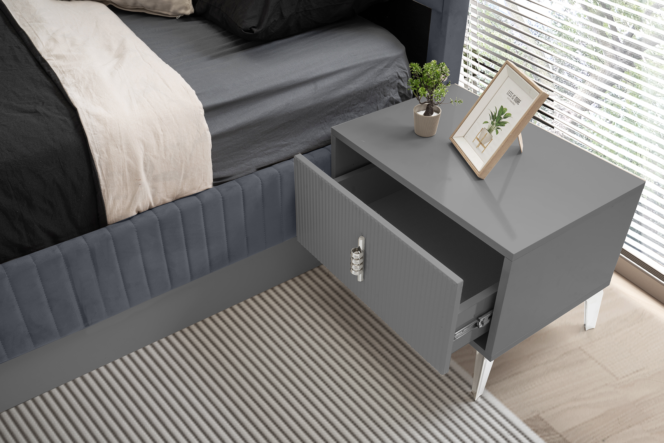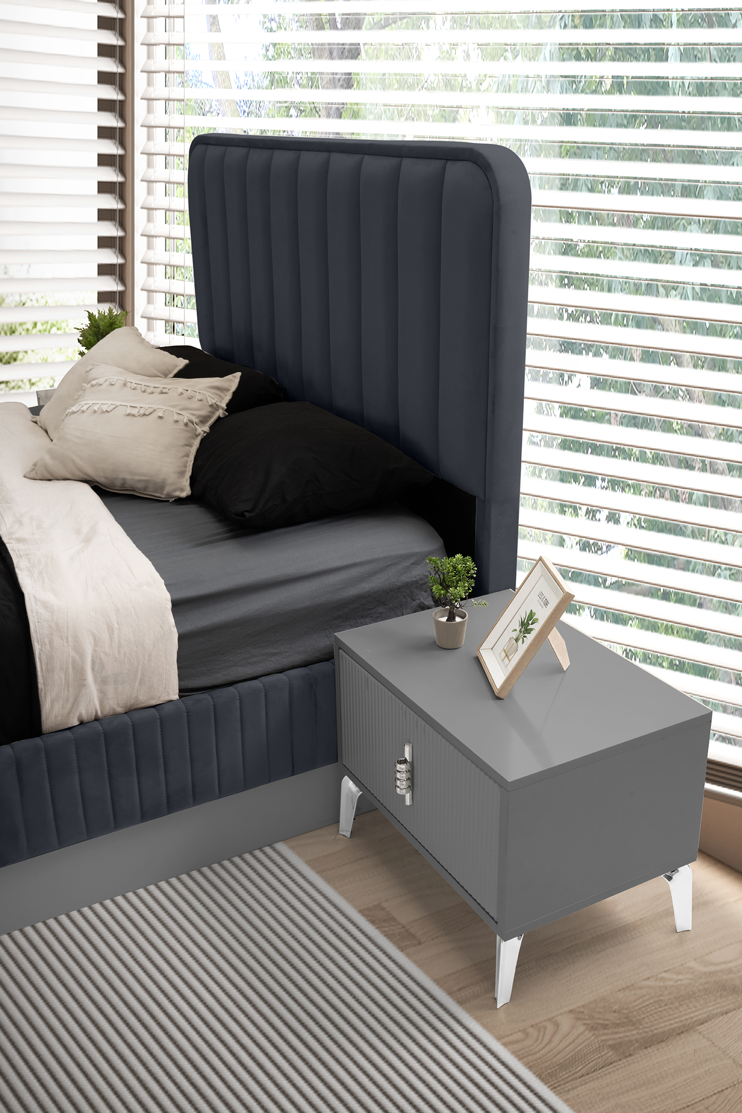 Sevin Home koyu gri komodinler, modern tasarımı ve sofistike renk tonlarıyla yatak odanıza şıklık katıyor. Kullanışlı çekmeceleri sayesinde eşyalarınızı düzenli tutarken, dayanıklı malzemeleri ve estetik detaylarıyla odanıza ferah ve zarif bir görünüm sağlar.