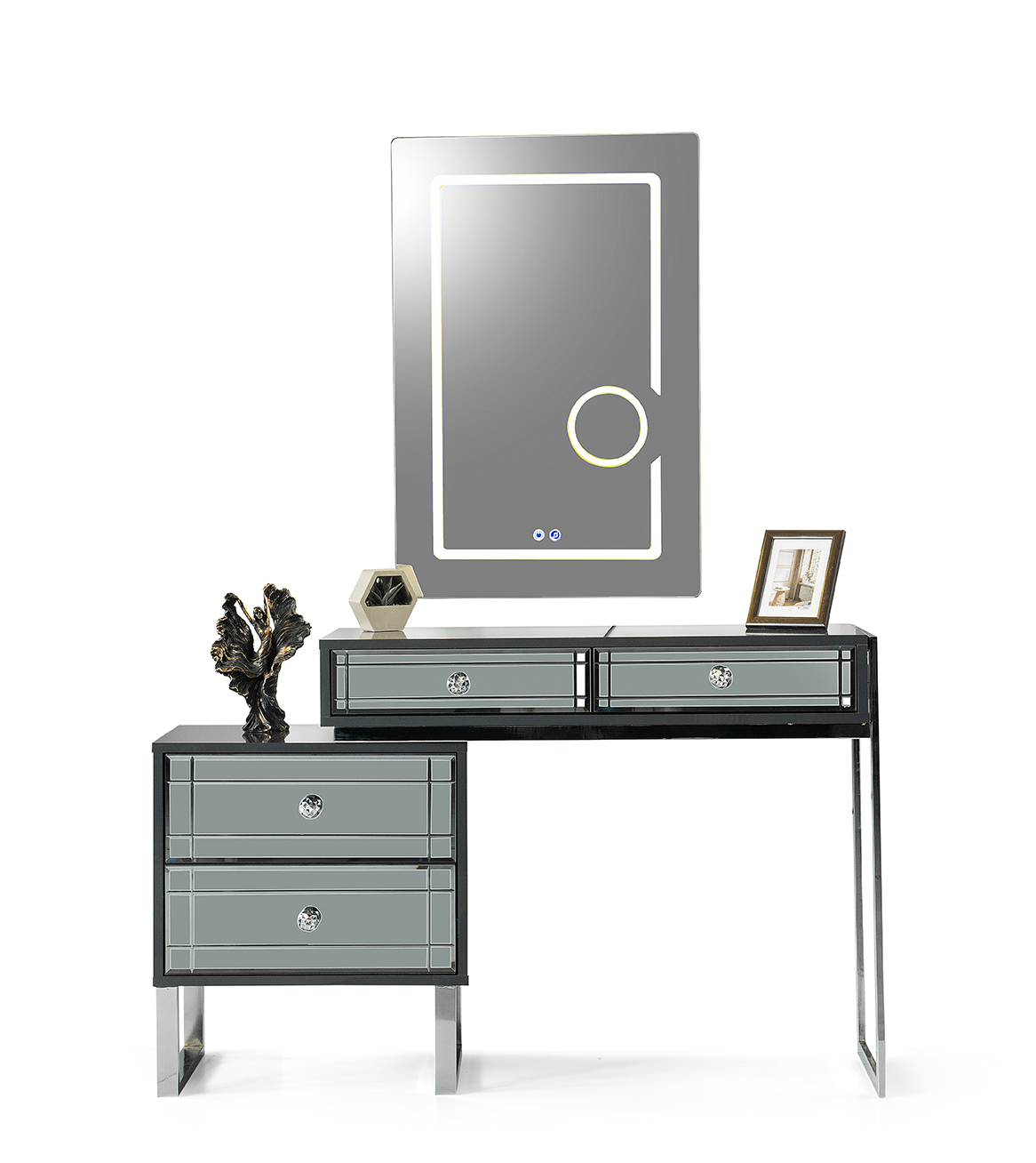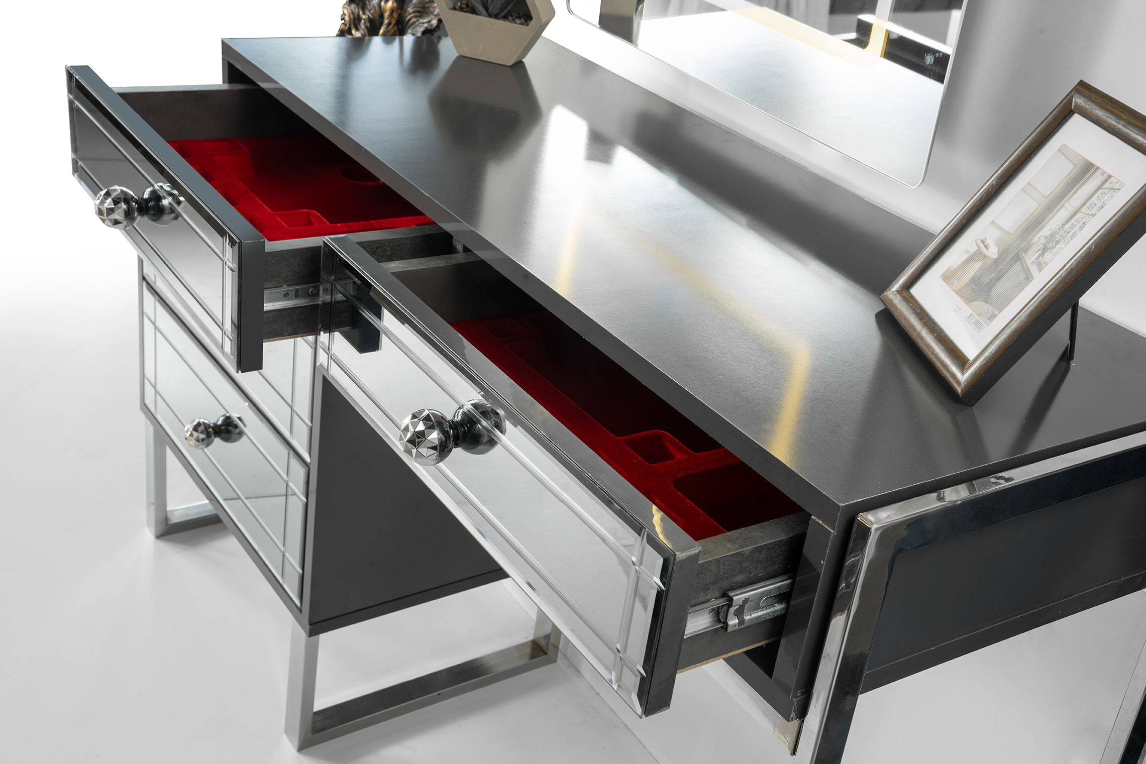 Sevin Home aynalı gri tonlamalı konsolu, şık ayna detayları ve modern gri renk tonlarıyla yaşam alanınıza sofistike bir dokunuş katıyor. Geniş depolama alanları ve dayanıklı yapısıyla eşyalarınızı düzenli tutarken, estetik tasarımıyla odanıza ferah ve zarif bir görünüm sağlar.
