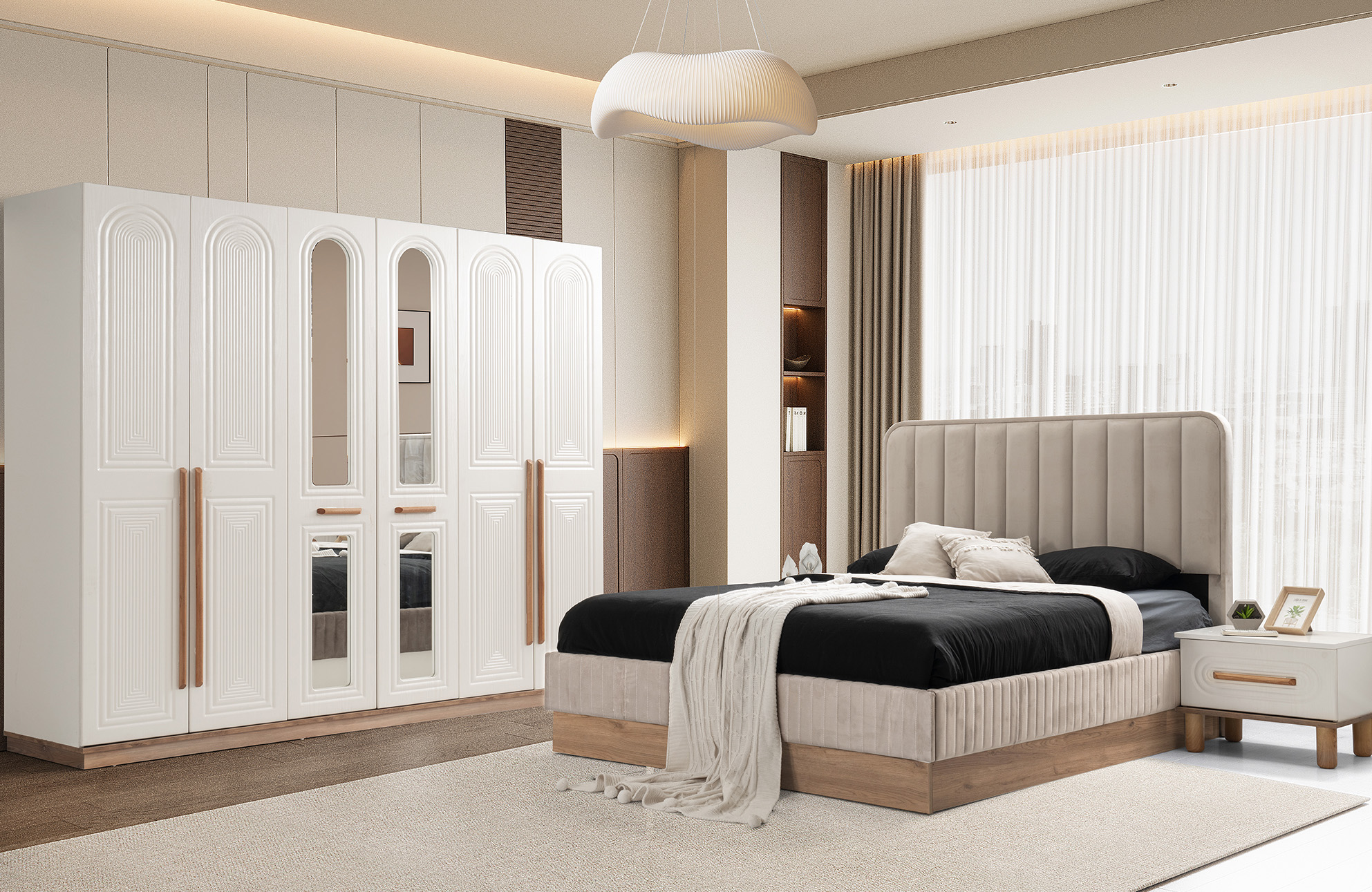 Sevin Home yatak odası full takımları, yatak, gardırop, komodin, makyaj masası ve diğer tamamlayıcı parçalarıyla eksiksiz bir uyum sunar. Modern çizgiler, dayanıklı malzemeler ve estetik detaylar sayesinde hem şık hem de fonksiyonel bir yaşam alanı yaratır. Tüm parçalar bir arada tasarlandığı için yatak odanızda düzen, konfor ve zarafet bir arada olur.